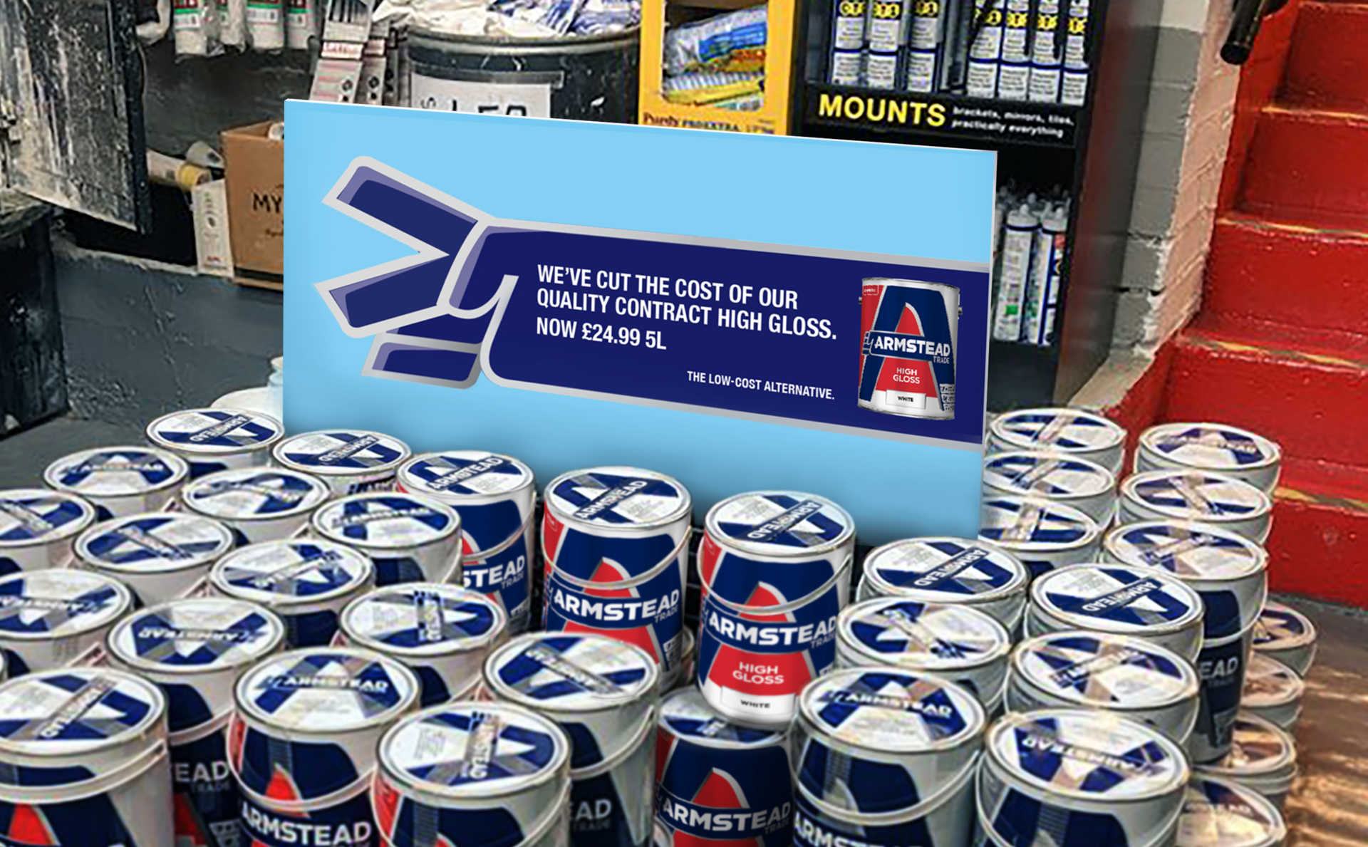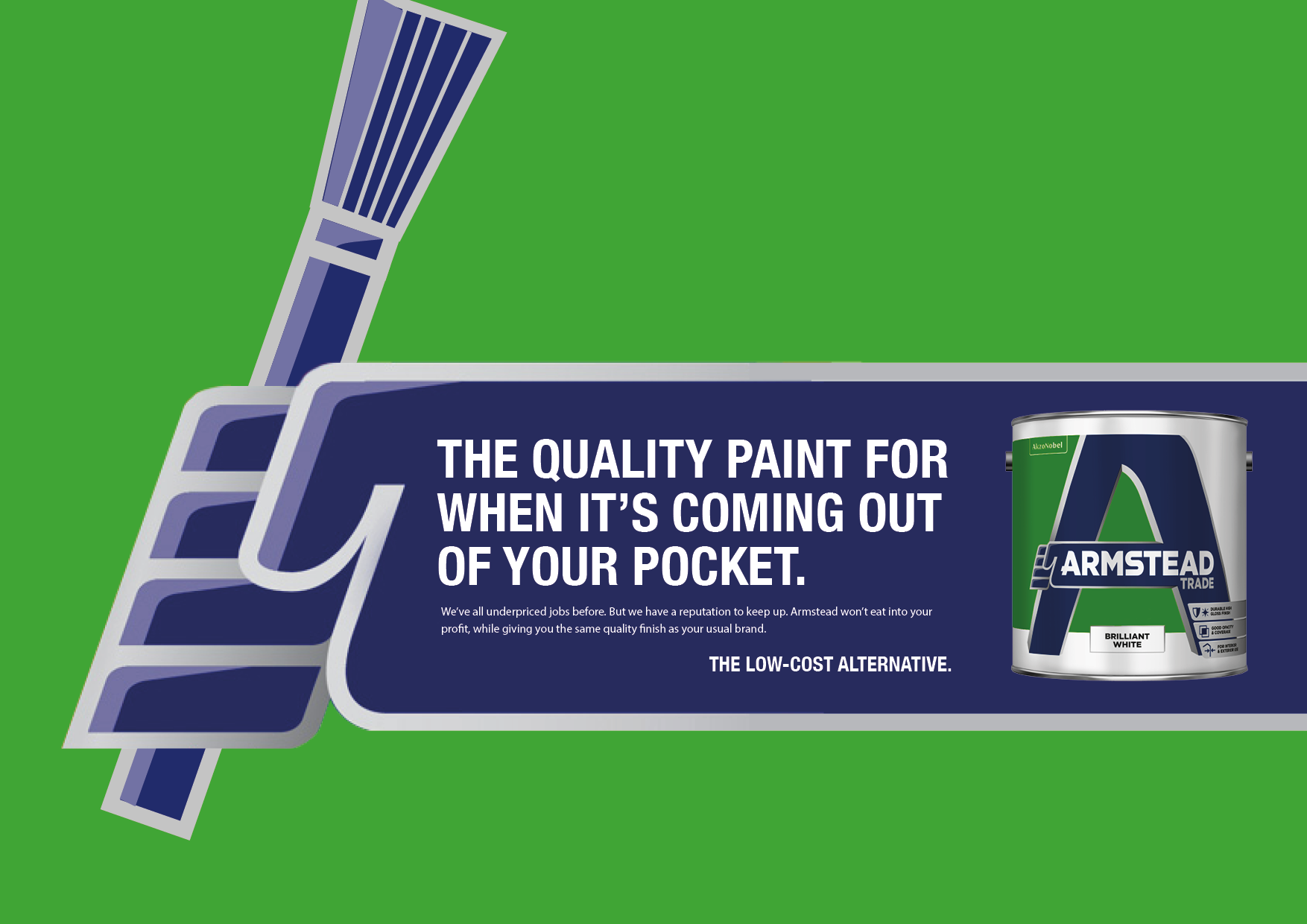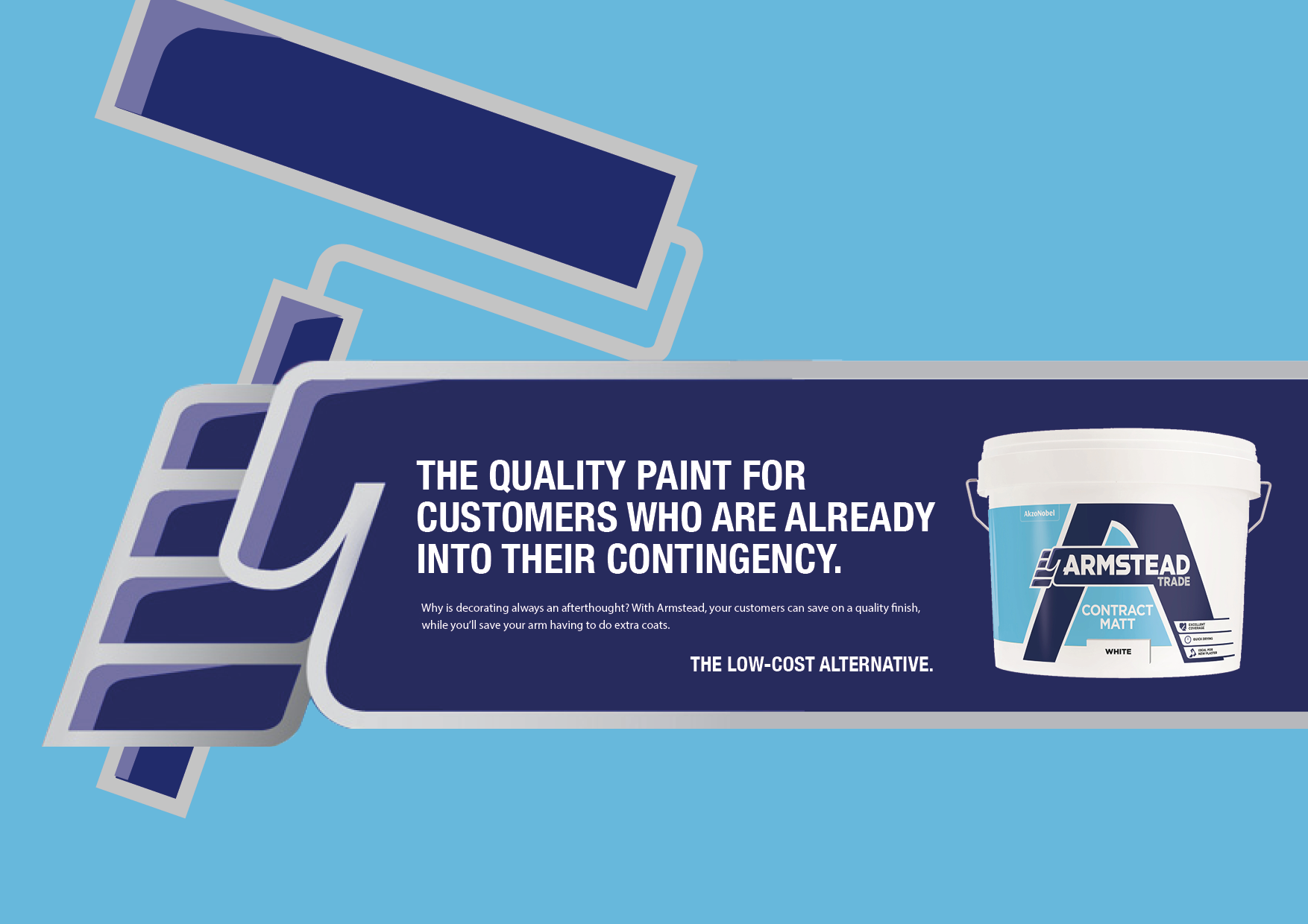 PRINT • SHOPPER Armstead was an economy paint brand. New to the market, Armstead needed a strong visual look and tone of voice to help them stand out and convert loyal tradesmen who already trusted other brands.
